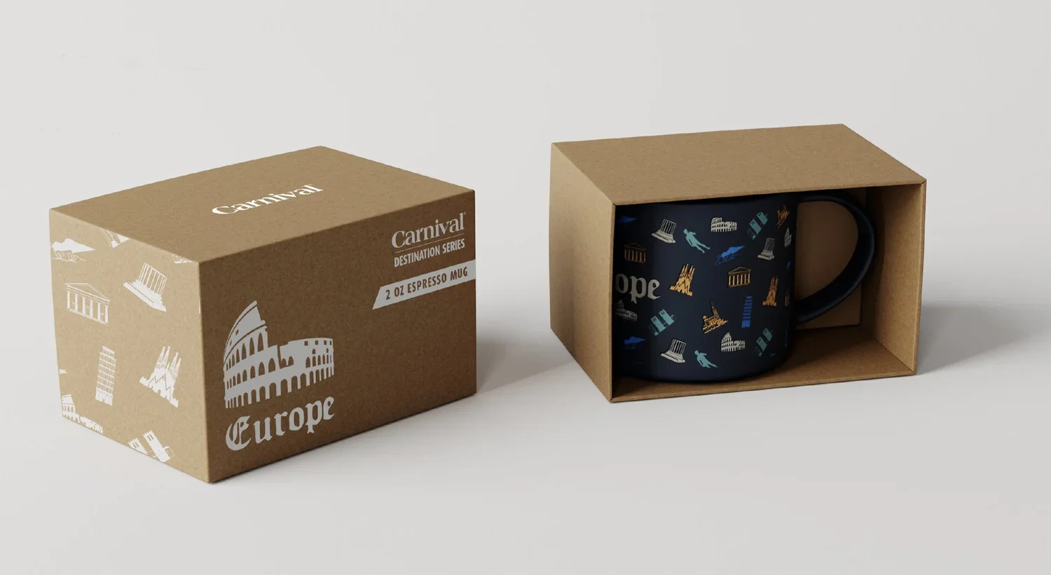 As part of Carnival’s collectible “Been There” mug series, I designed a wrap illustration celebrating the Carnival cruise ship FLEET. The artwork captures the CRUISE itinerary with playful, hand-drawn icons, from whales and glaciers to burgers and karaoke mics. all rendered in a limiteD palette SPECIFIC TO EACH SHIP. The design wraps seamlessly around the mug, creating a vibrant keepsake for guests.