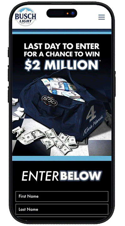 I designed the mobile and desktop layouts for this Busch Light sweepstakes, crafting a seamless, intuitive, and visually engaging experience. Every detail was carefully considered to ensure contestants could easily navigate the entry process while enjoying an immersive and on-brand journey from start to finish.